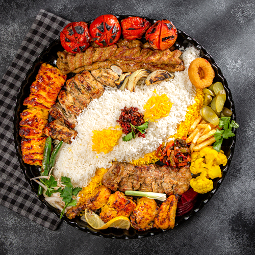 <p>جوجه زعفرانی. جوجه ماستی . جوجه بحرینی . کوبیده . فیله سوخاری . برنج</p>
